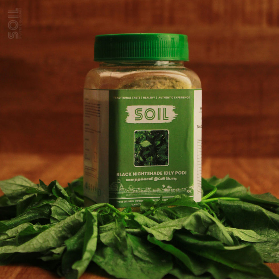 Intrigue your palate with Manathakkali Idly Podi! This podi is an invitation to a culinary adventure. Manathakkali greens introduce a surprising twist with their slightly bitter and peppery notes. Roasted with urad dal, chana dal, sesame seeds, and a touch of coconut flakes, the contrasting textures keep your senses engaged. Black pepper, cumin, turmeric, and curry leaves complete this flavourful and intriguing breakfast companion, perfect for those who seek something different.